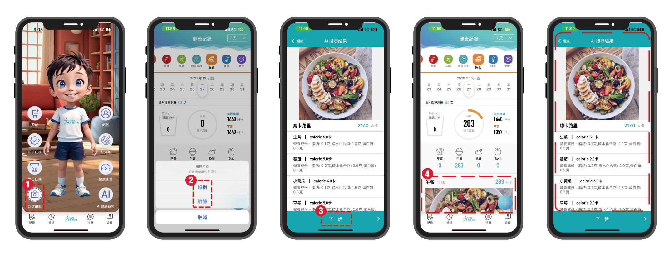 AI飲食辨識功能,輕鬆掌握熱量、蛋白質、油脂攝取狀況。