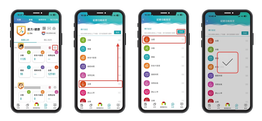 (2) 「家庭帳號」內的成員需顯示血壓數據,並截圖該畫面。