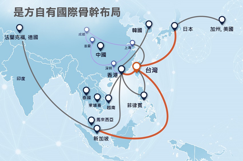 除了在台北內湖地區擁有超過1萬坪的機房大樓外,為提供更廣泛的機房服務,是方與各地的電信業者緊密合作,持續增加各地的電信機房服務據點,包含:日本、新加坡、香港、中國與東南亞地區,讓企業在當地的據點,擁有策略性的競爭優勢。